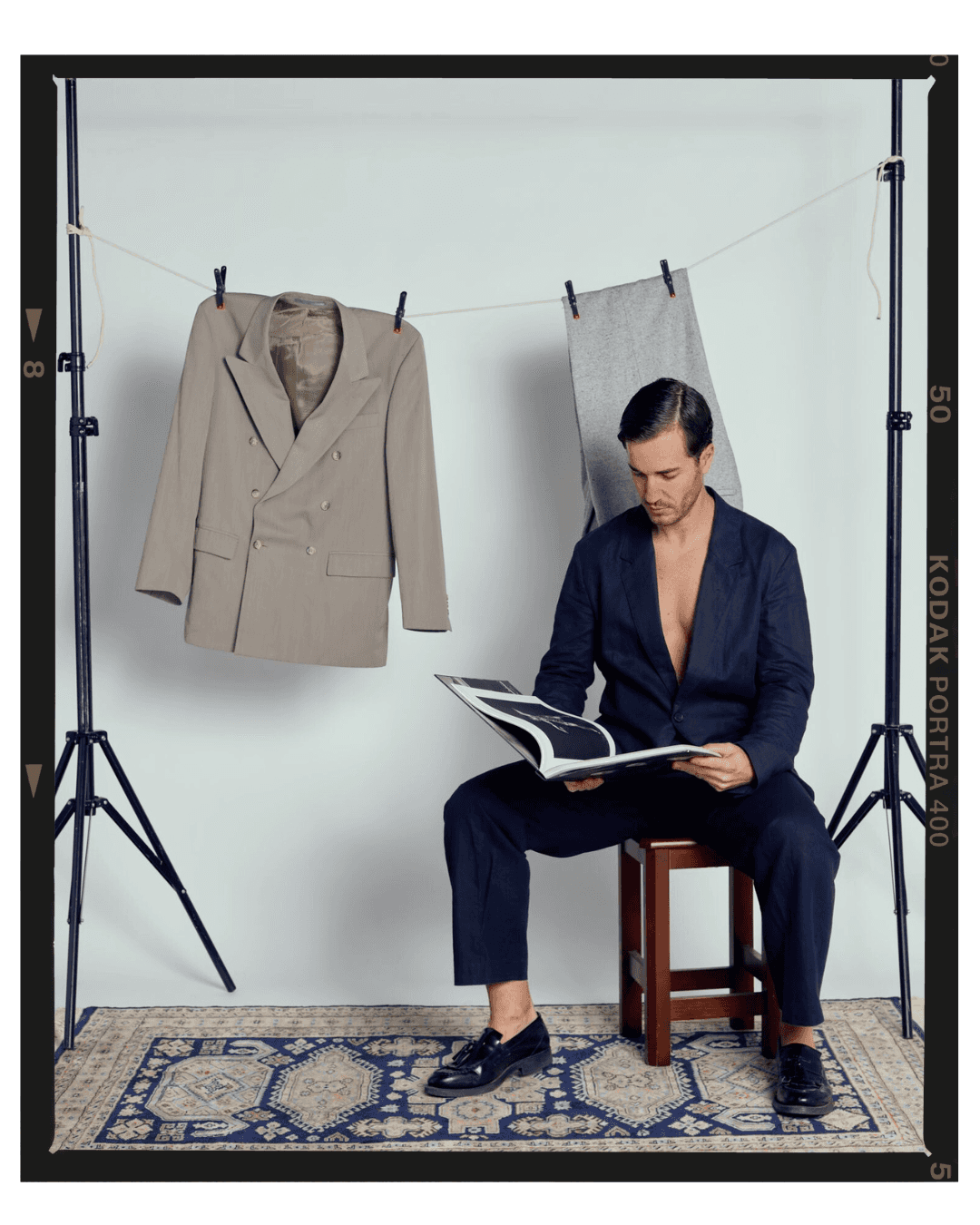 Tradition meets modernity. A man in a sharp suit, seated with quiet authority, grounded by a rich carpet. Power, poise, and movement redefined.